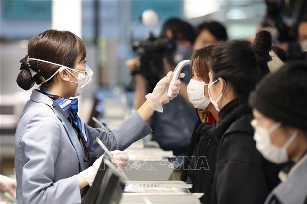 viên chức hàng không rà soát thân nhiệt các hành khách trước khi họ về Vũ Hán (Trung Quốc) tại sân bay quốc tế thủ đô Tokyo, Nhật Bản ngày 31/1/2020. Ảnh: THX/TTXVN