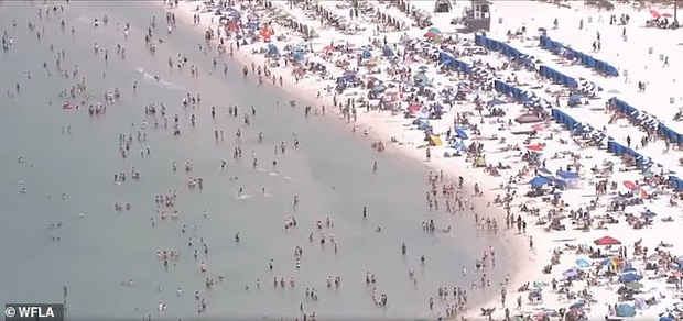 Bãi biển Clearwater tại bang Florida chật cứng du khách trong những ngày cuối tuần. Ảnh: WFLA